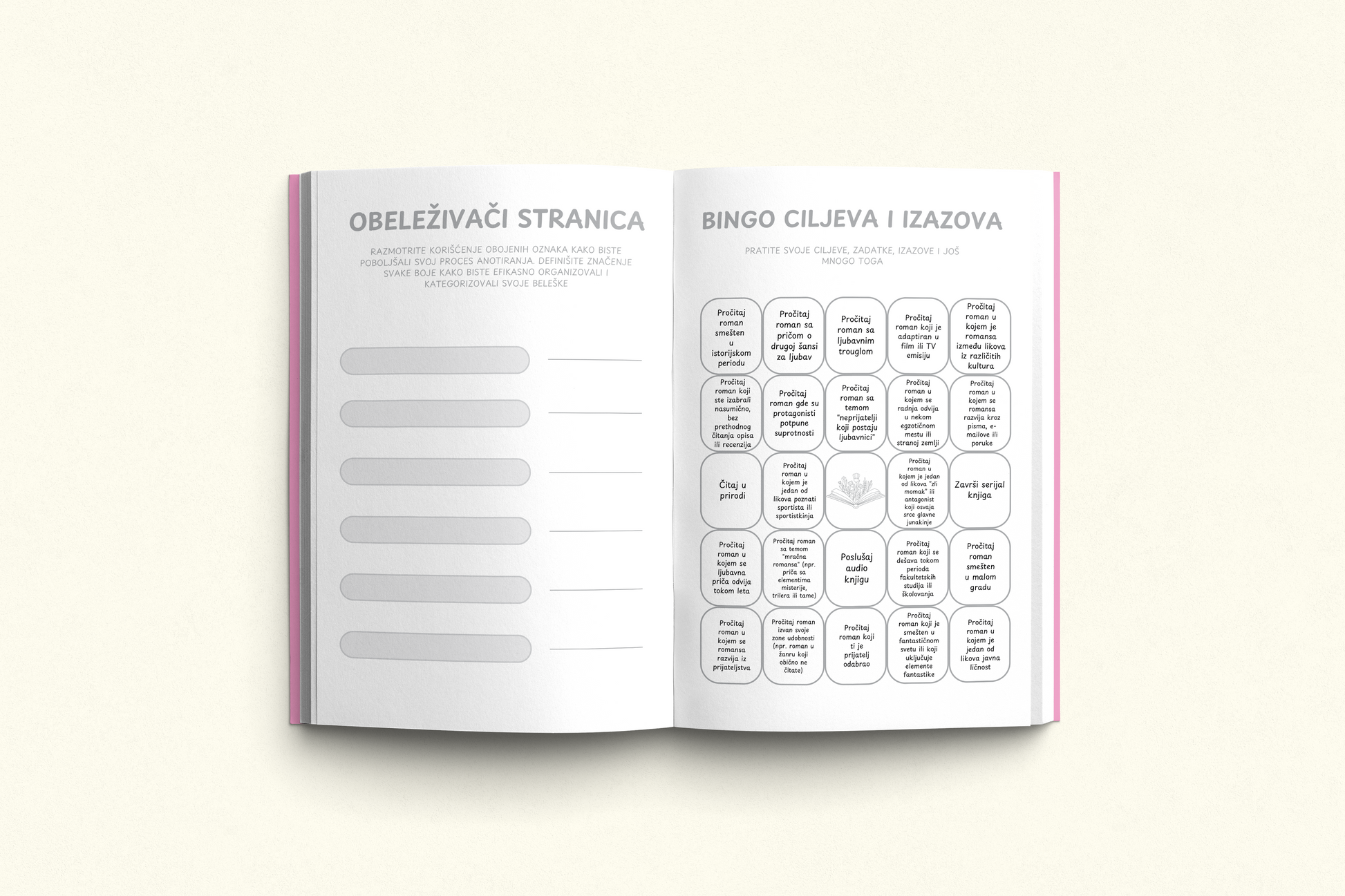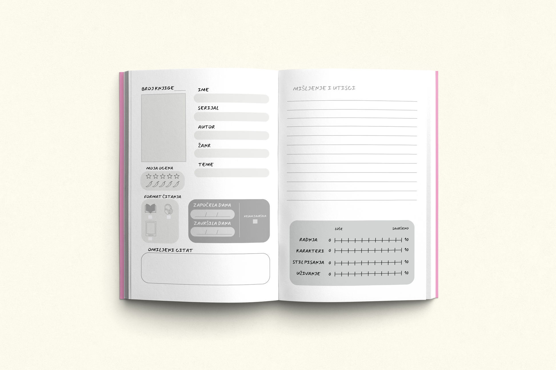 U bebi ružičastoj boji, ovaj dnevnik je savršeno mesto za istraživanje priča koje dodiruju vaše srce. Zabeležite svoje misli i neka vaša strast prema romansi procveta! Naš dnevnik knjiga je stvoren da vam pomogne da zabeležite, analizirate i u potpunosti uživate u svakom delu književnog sveta koji istražujete. Bilo da postavljate ciljeve za čitanje ili pratite svoj napredak, dnevnik sadrži različite sekcije, uključujući personalizovani sistem ocenjivanja, izazove, kalendar izdanja, TBR listu, recenzije i mnogo više. Zaronite u svet knjiga uz naš dnevnik i učinite svako čitanje nezaboravnim iskustvom.