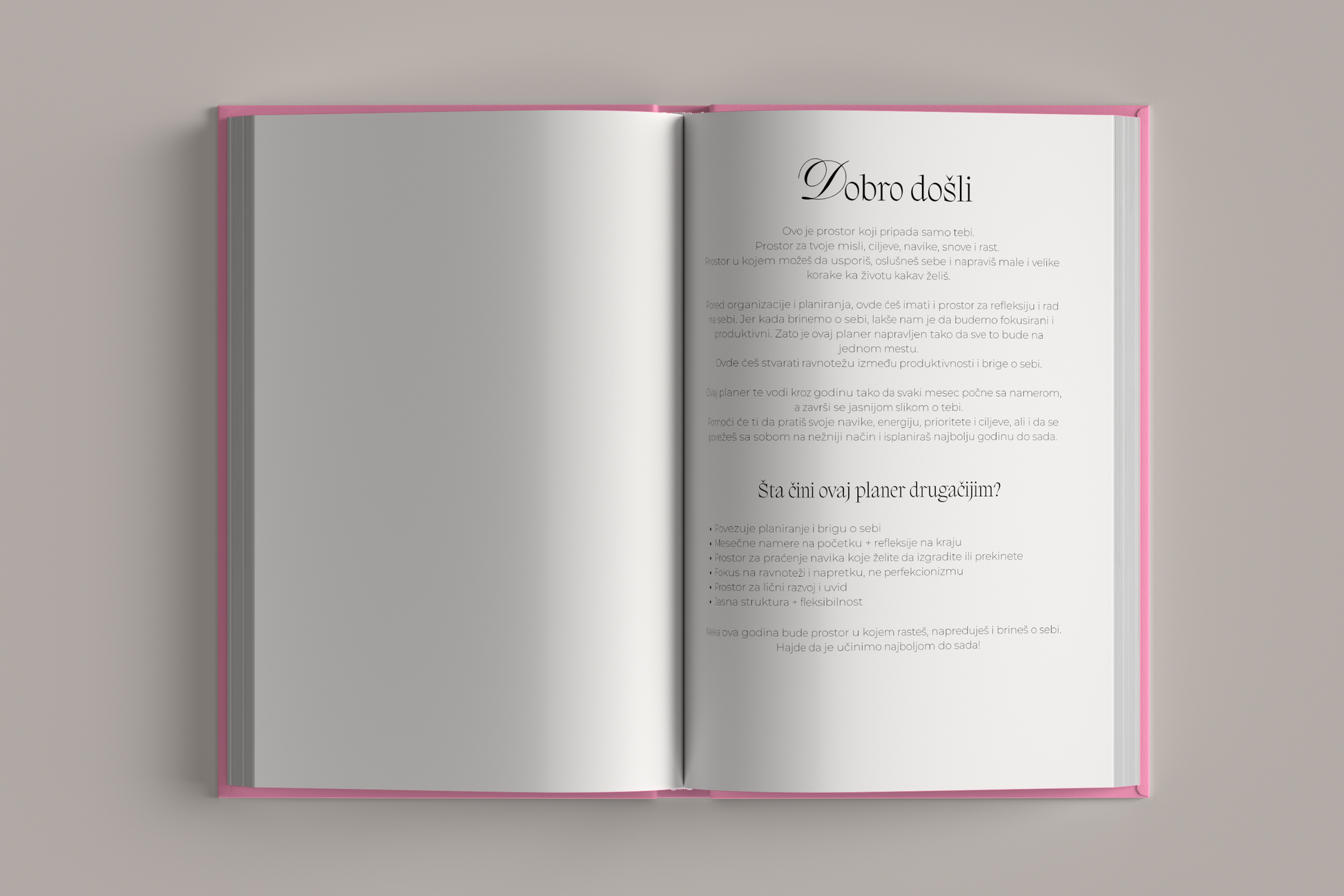 Planer je osmišljen kao prostor za vaše misli, ciljeve, navike i svakodnevno planiranje. Namenjen je svima koji žele bolju organizaciju, ali i više svesnosti, ravnoteže i brige o sebi tokom cele godine.